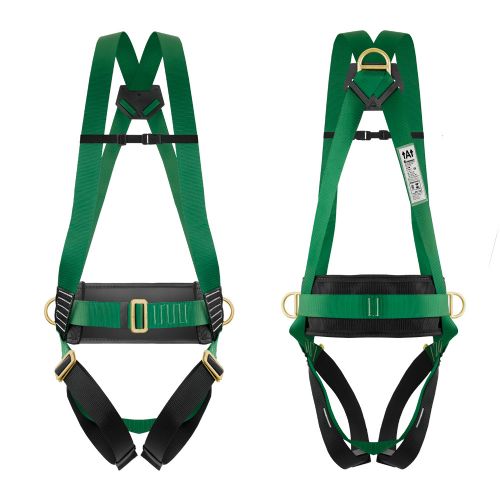 Três meia argolas em aço forjado bicromatizado: Uma dorsal para retenção de queda e duas laterais para posicionamento.